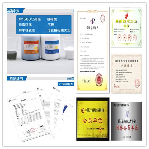 株洲世林膠業(yè)就是一家致力于液態(tài)膠粘研發(fā)、生產(chǎn)、銷售、服務為一體的專業(yè)公司,生產(chǎn)的SL8304耐1500℃無機高溫膠,是一種需要高溫固化的雙組份膠粘劑,具有阻燃、耐溫性好、固化后耐水、有一定的膠接強度和密封作用,使用方便。主要用于耐高溫部件的密封和膠接(初固),其工作溫度從-40~+1500℃。 短時可達+1600℃。不僅應用于電加熱管灌封,還用于耐高溫陶瓷、燈頭、金屬密封槽等高溫部件的膠結(jié)(初固)及密封。也用在冶煉行業(yè)高溫爐體、溢流槽、引流槽等作為修補管壁來使用。